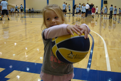 Gretchen went to her first basketball camp today at daddy's work. Kid Rocker camp. She was a little nervous at first but did a great job!! It was so cute to watch.
